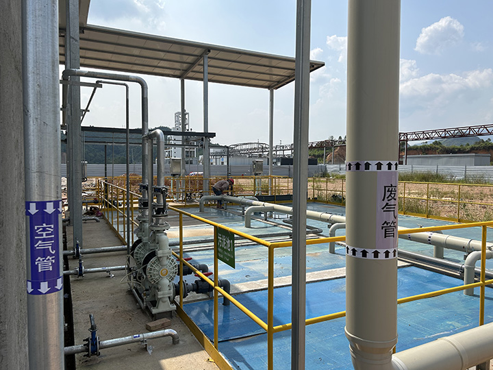 采用前處理 +IC厭氧塔+好氧+MBR工藝 COD進(jìn)水60000mg/l,出水COD<200mg/l,氨氮進(jìn)水800mg/l,出水40mg/l,達(dá)到管網(wǎng)排放標(biāo)準(zhǔn)
