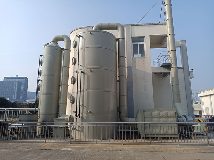 2、開(kāi)展糞便無(wú)害化處理廠廢氣處理,對(duì)卸糞間卸料倉(cāng)進(jìn)行密閉處理,房?jī)?nèi)采取微負(fù)壓,化糞池進(jìn)行密閉,化糞池原廢氣管道更換,廢氣經(jīng)管道收集后與卸糞間廢氣一同處理,廢氣排放口達(dá)15m,本項(xiàng)目采用“中和洗滌-生物滴濾法+活性炭吸附聯(lián)合除臭”處理工藝,廢氣排放達(dá)到相關(guān)排放標(biāo)準(zhǔn)。